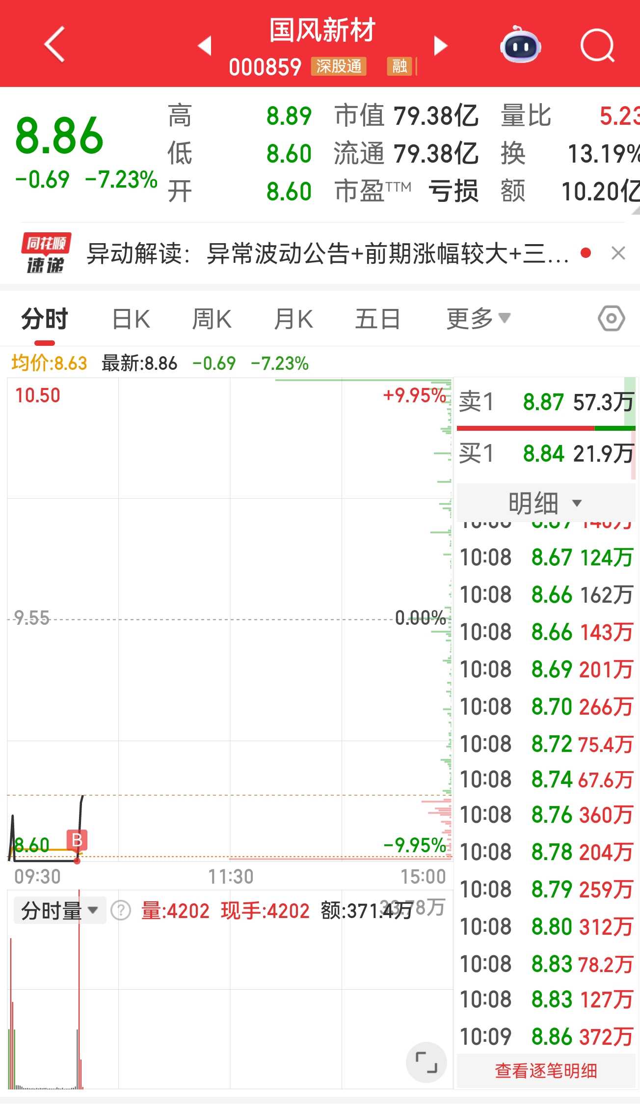 $国风新材(SZ000859)$ 加仓 加仓