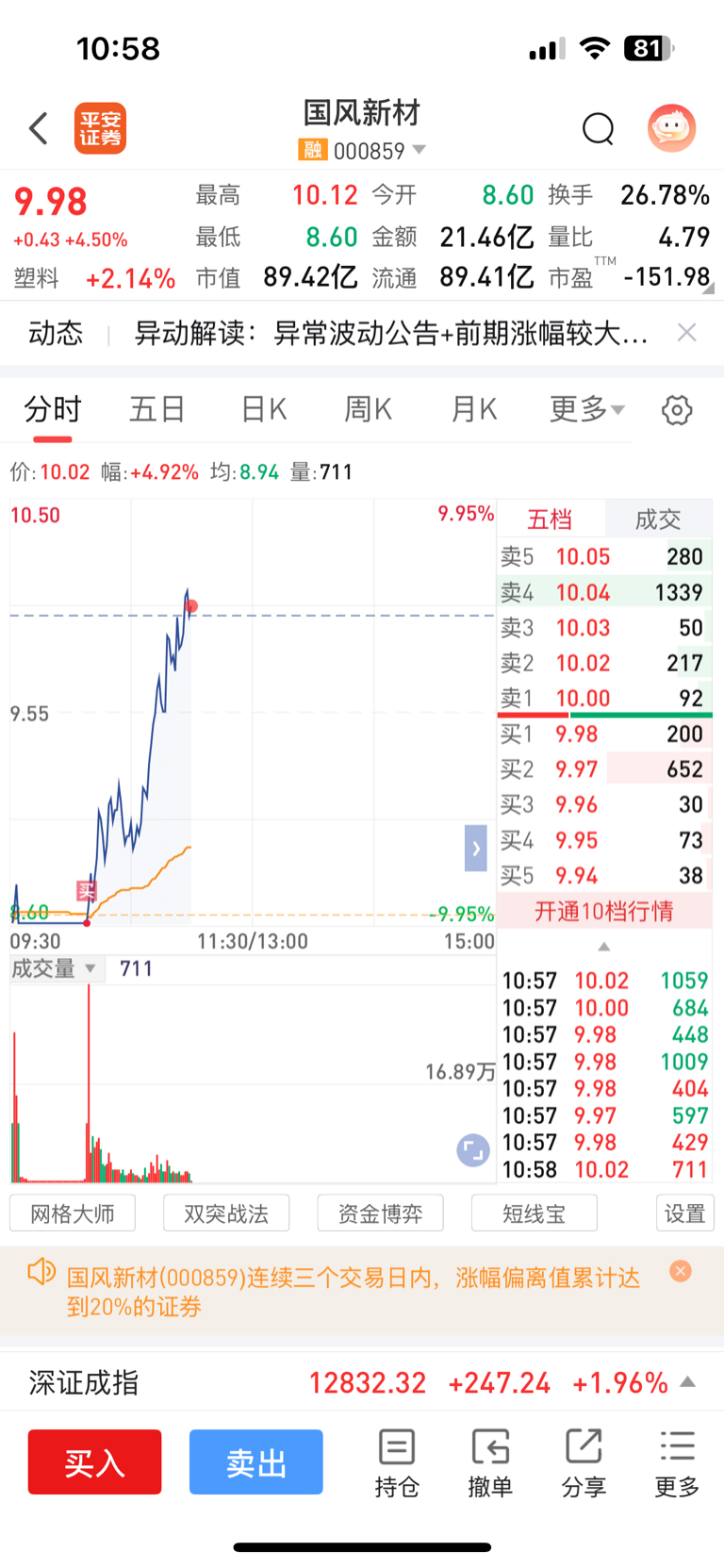 $国风新材(SZ000859)$ 地天板了又,哈哈