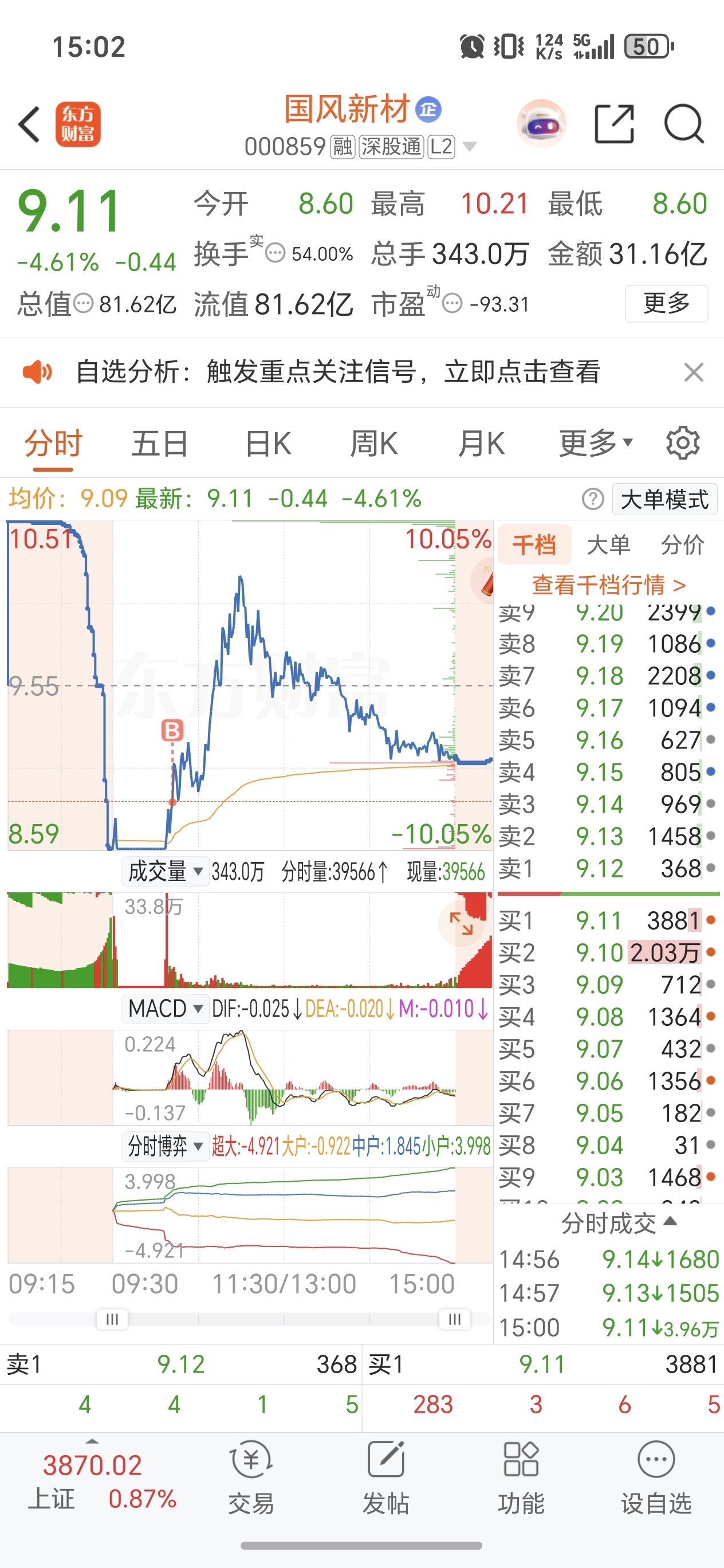 盘中富贵,这区区三个点感觉不够明天亏的。明天竞价来个弱转强红开吧
