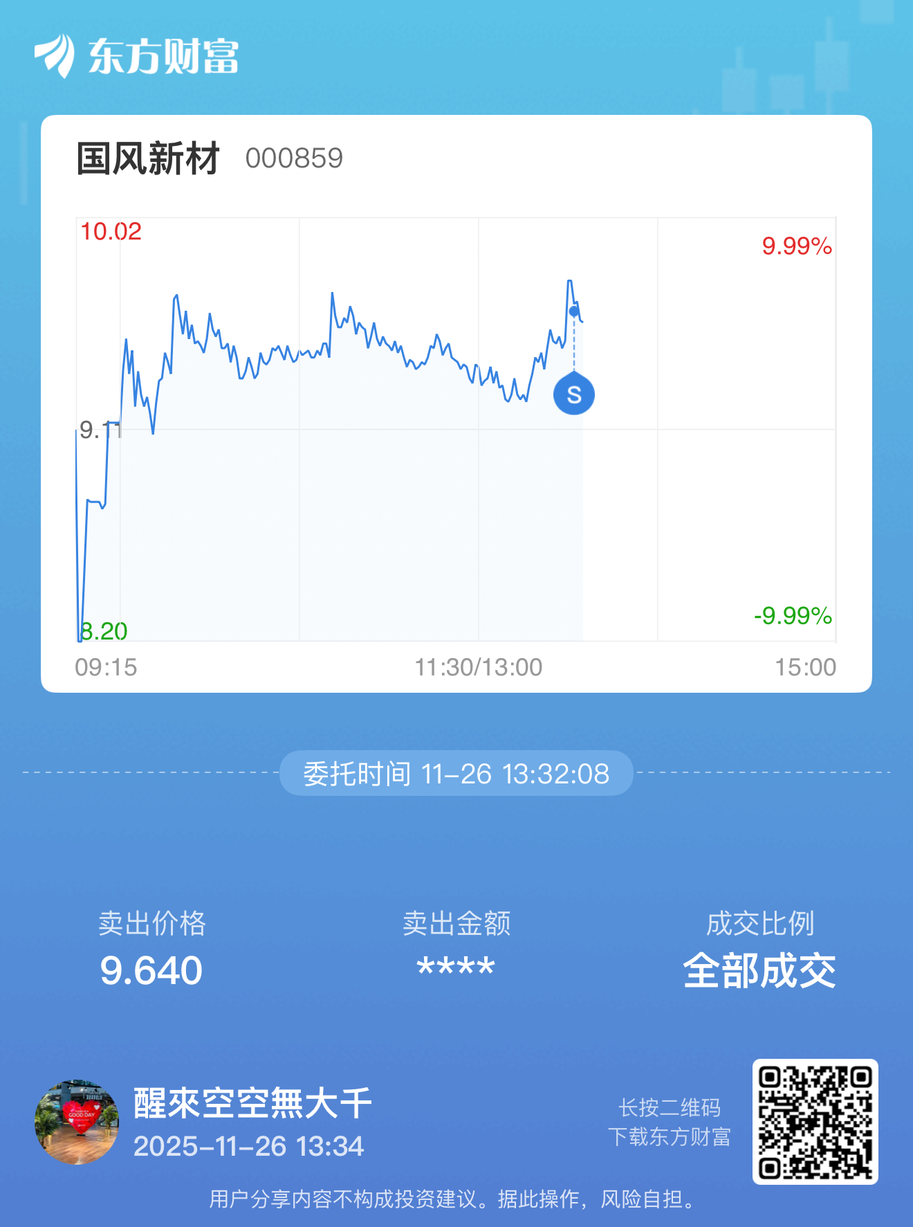 温馨提示: 1.根据《证券法》规定,禁止编造、传播虚假信息或者误导性信息,扰乱证券市场;2.用户在本社区发表的所有资料、言论等仅代表个人观点,与本网站立场无关,不对您构成任何投资建议。用户应基于自己的独立判断,自行决定证券投资并承担相应风险。《东方财富社区管理规定》