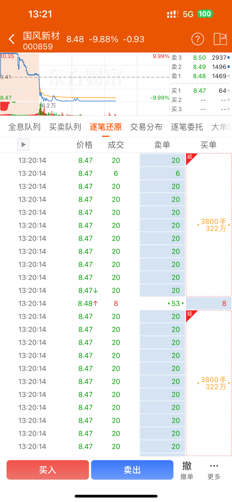 $国风新材(SZ000859)$ 谁能解释一下,一有大单买就是这样