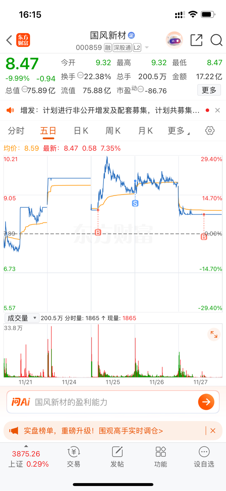 $国风新材(SZ000859)$ 明天能让我吃点肉吗