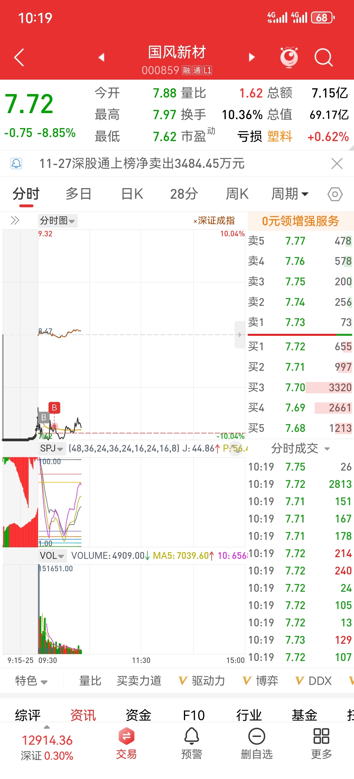$国风新材(SZ000859)$ 可惜了,昨天看了国风新材和实达集团,都准备今天低吸的,看着实达集团快红盘,好难受