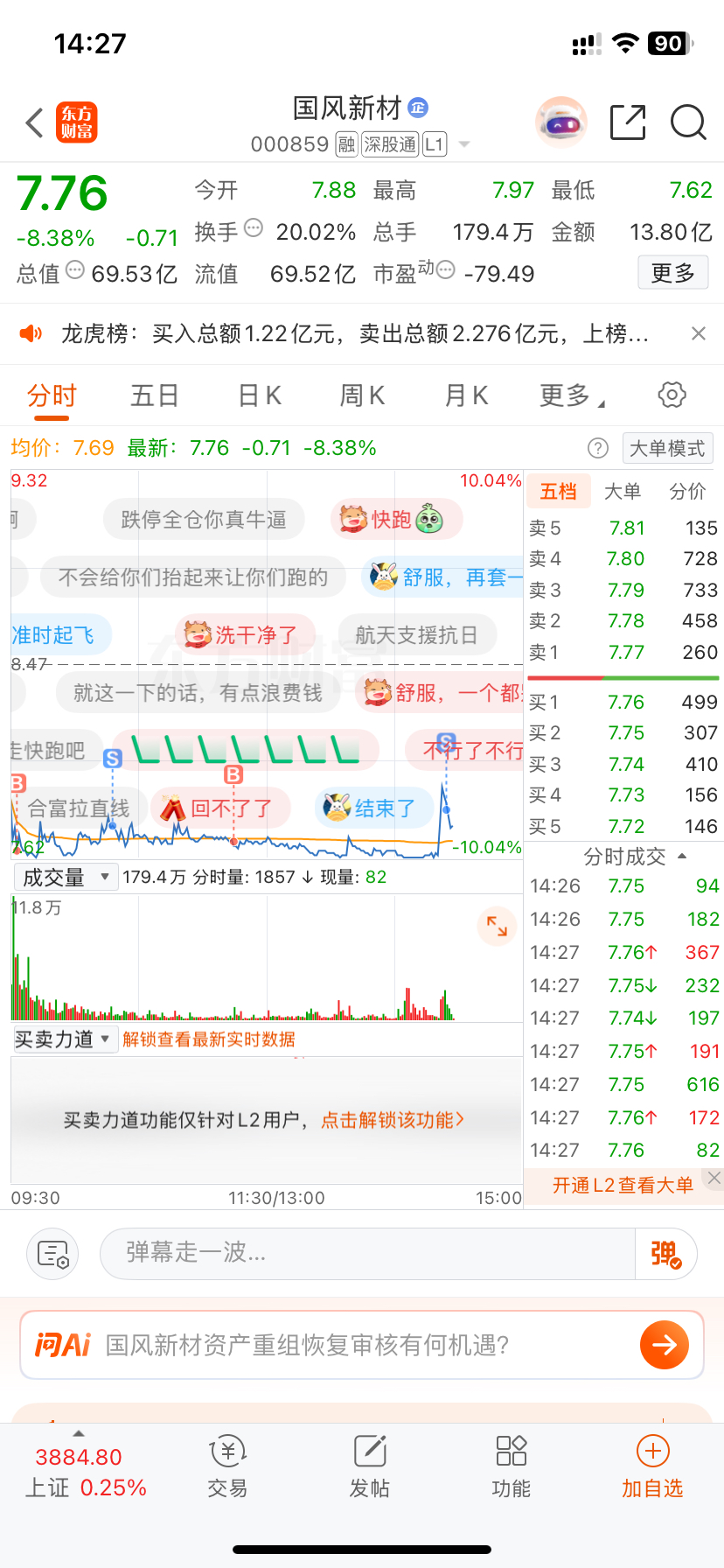 $国风新材(SZ000859)$ 手太慢了,哎,7.92的时候要卖已经来不及了,最后7.83卖了