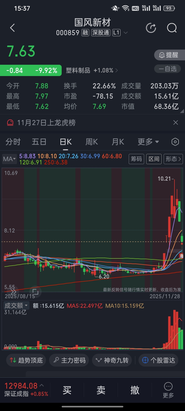 $国风新材(SZ000859)$ 观察了几天,今天买了一点,小赌怡情