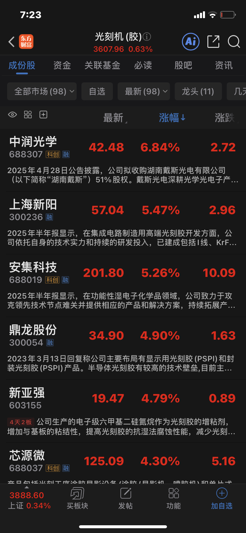 你们都看看光刻胶都是什么价位,反正我是冲着光刻胶来的,你们随便