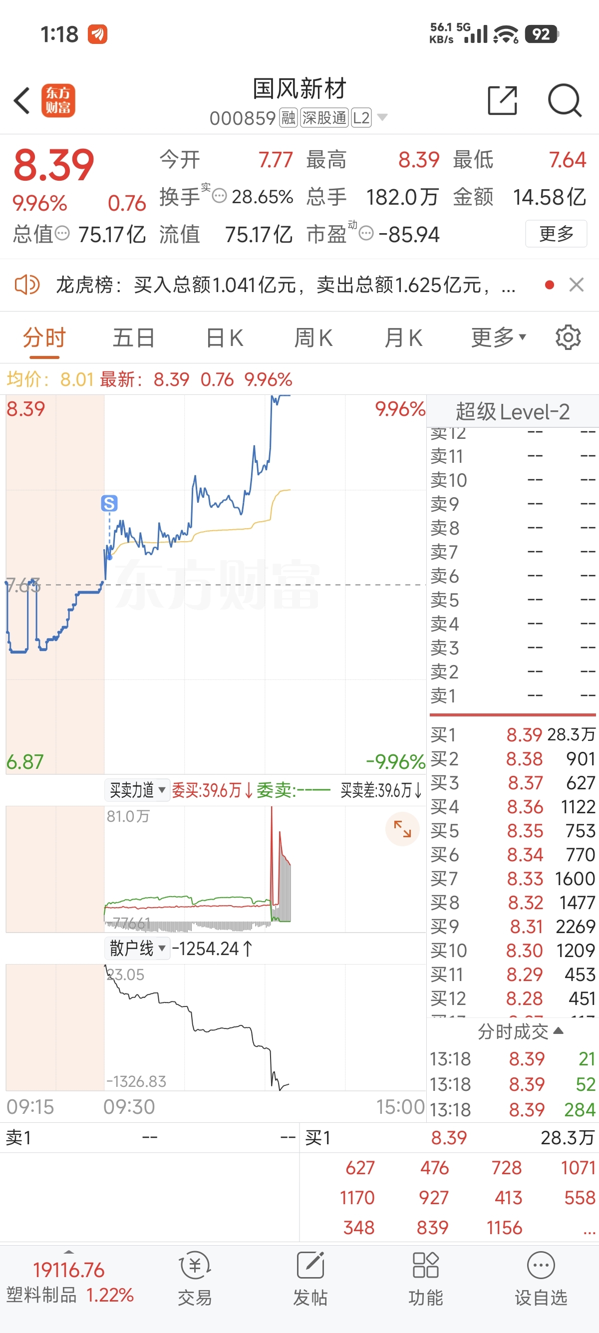 $国风新材(SZ000859)$ 卖飞了好难受,本来在周末就一个尽唱多