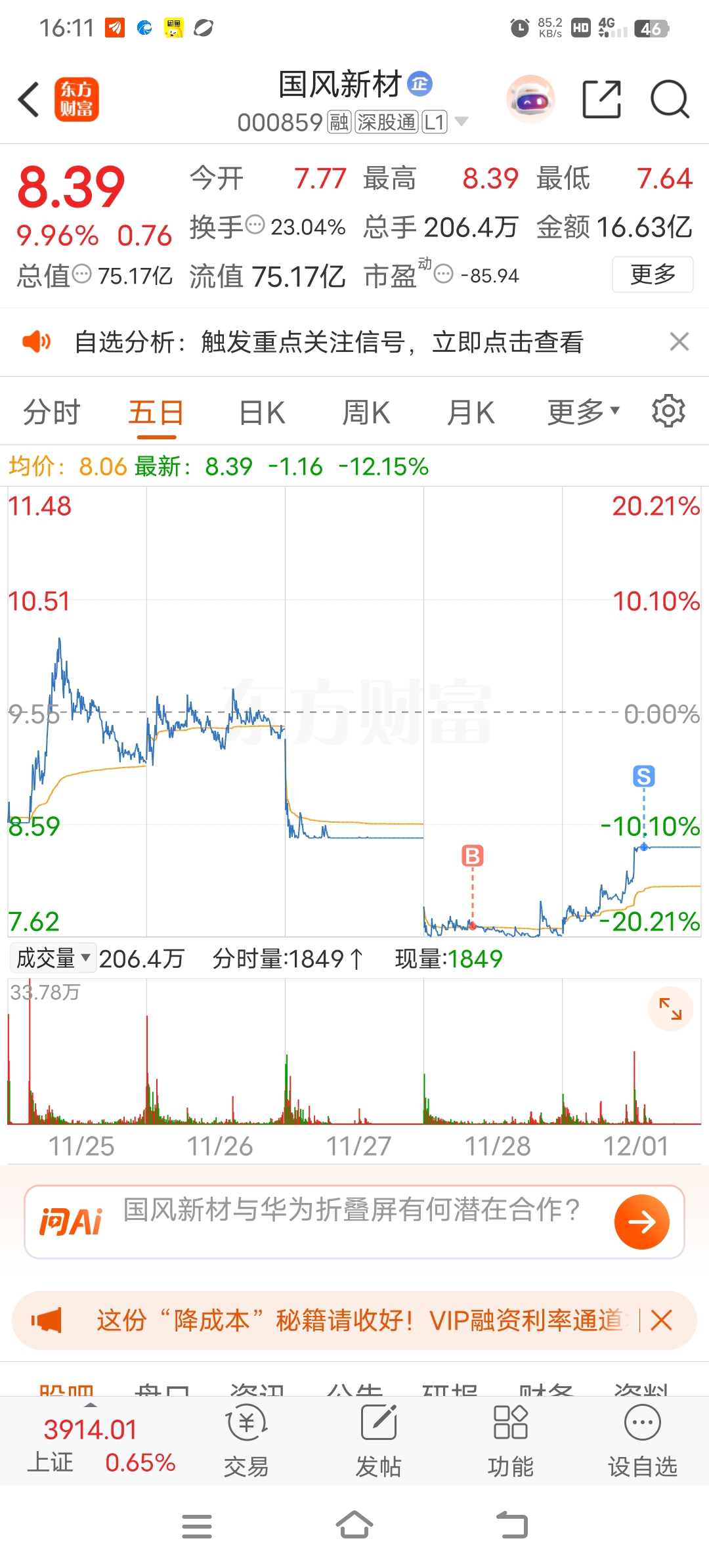 $国风新材(SZ000859)$ 就吃8个点,感觉给家人们丢脸了