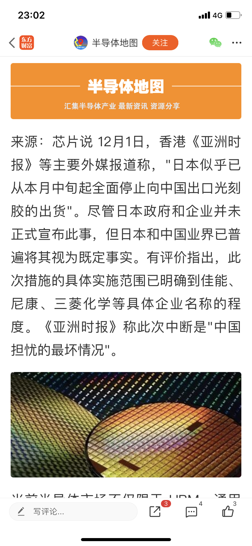 $国风新材(SZ000859)$ 日本正式断供光刻胶!!!!!!!