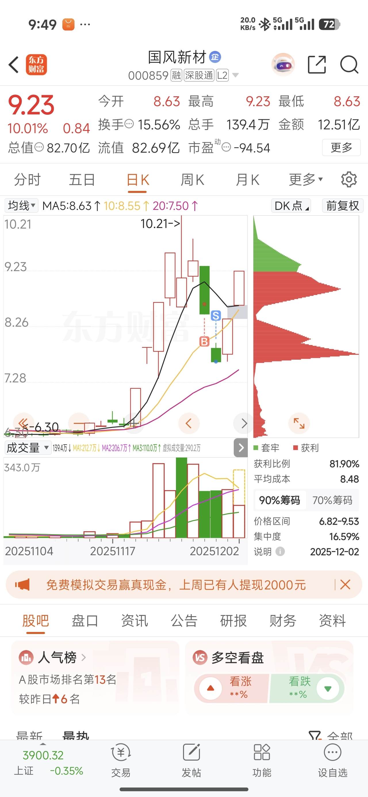 $国风新材(SZ000859)$ 我就是来贡献的韭菜