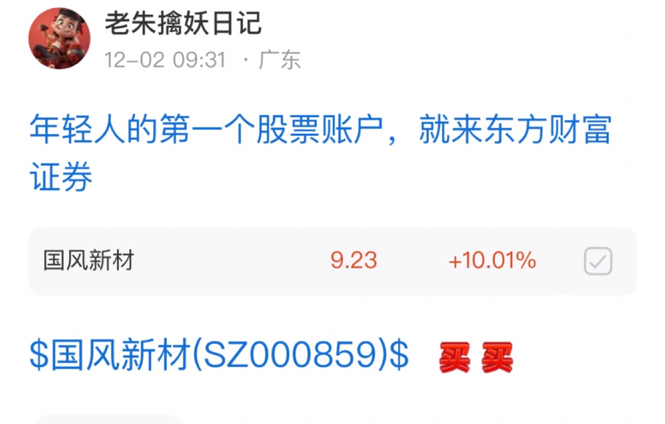 $国风新材(SZ000859)$ 早上提醒的,又是吃大肉了,点赞评论168起来,活跃起来给我一点力量。
