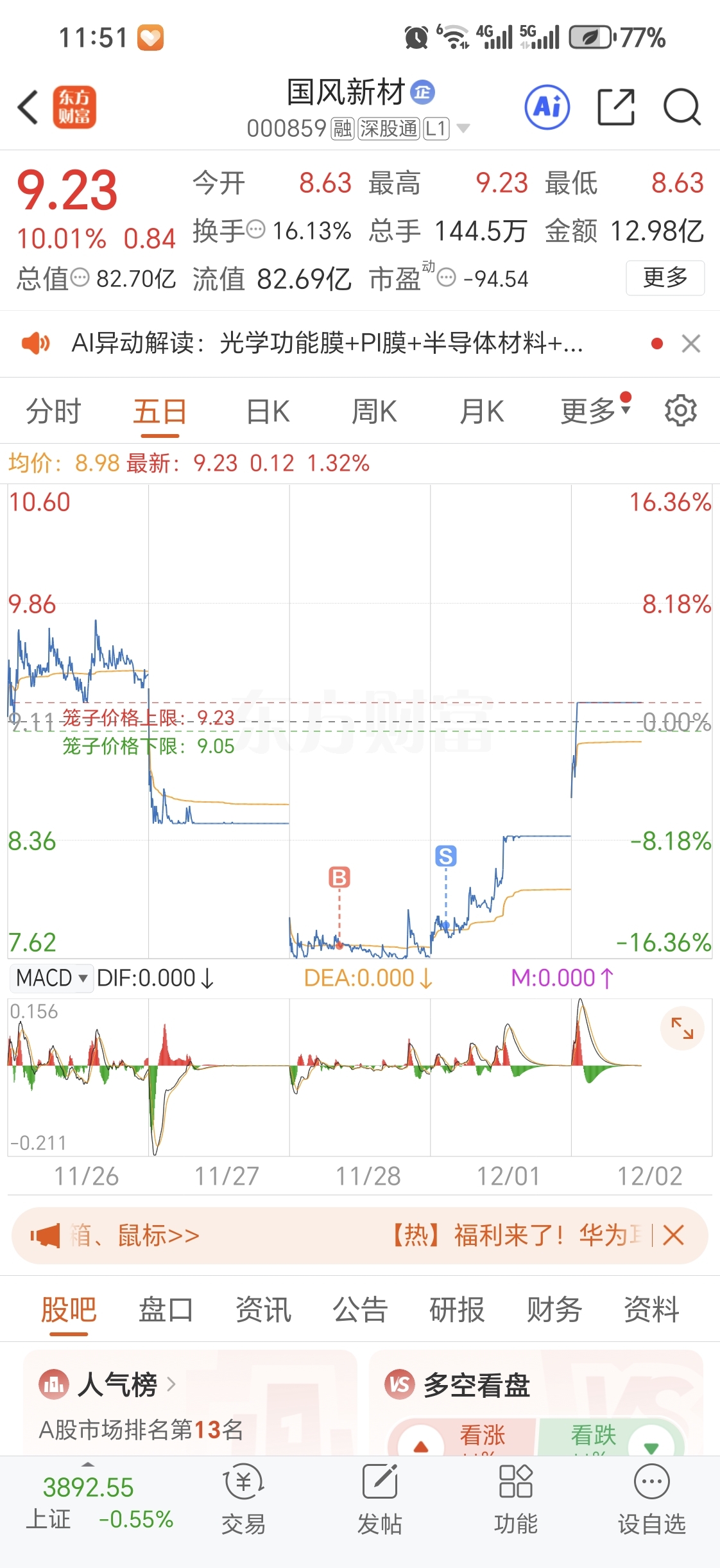 温馨提示: 1.根据《证券法》规定,禁止编造、传播虚假信息或者误导性信息,扰乱证券市场;2.用户在本社区发表的所有资料、言论等仅代表个人观点,与本网站立场无关,不对您构成任何投资建议。用户应基于自己的独立判断,自行决定证券投资并承担相应风险。《东方财富社区管理规定》