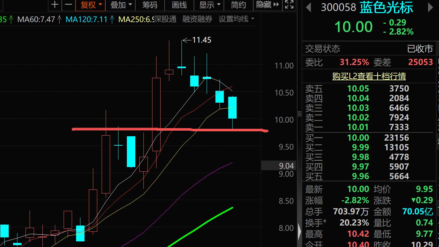 蓝色光标今天走势跌破10日线,连续5个阴线,有点难看了。调整空间和时间都到了,明天如果有反转或者收阳,形态还会拉回,如果继续沙,人气就会被破坏。炎哥对这个票一直很看好,即便提醒到变盘窗口,也是希望能向上结束调整,但是主力行为不以炎哥意志为转移。明天怎么做,炎哥早评再赘叙。