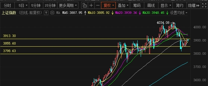 如果今天继续向上,大盘就会聚集人气,很快就到3930点20日线和30日线,现在来看节奏还在在震荡。成交量来看毅然保持在1.5万亿至1.6万亿之间。