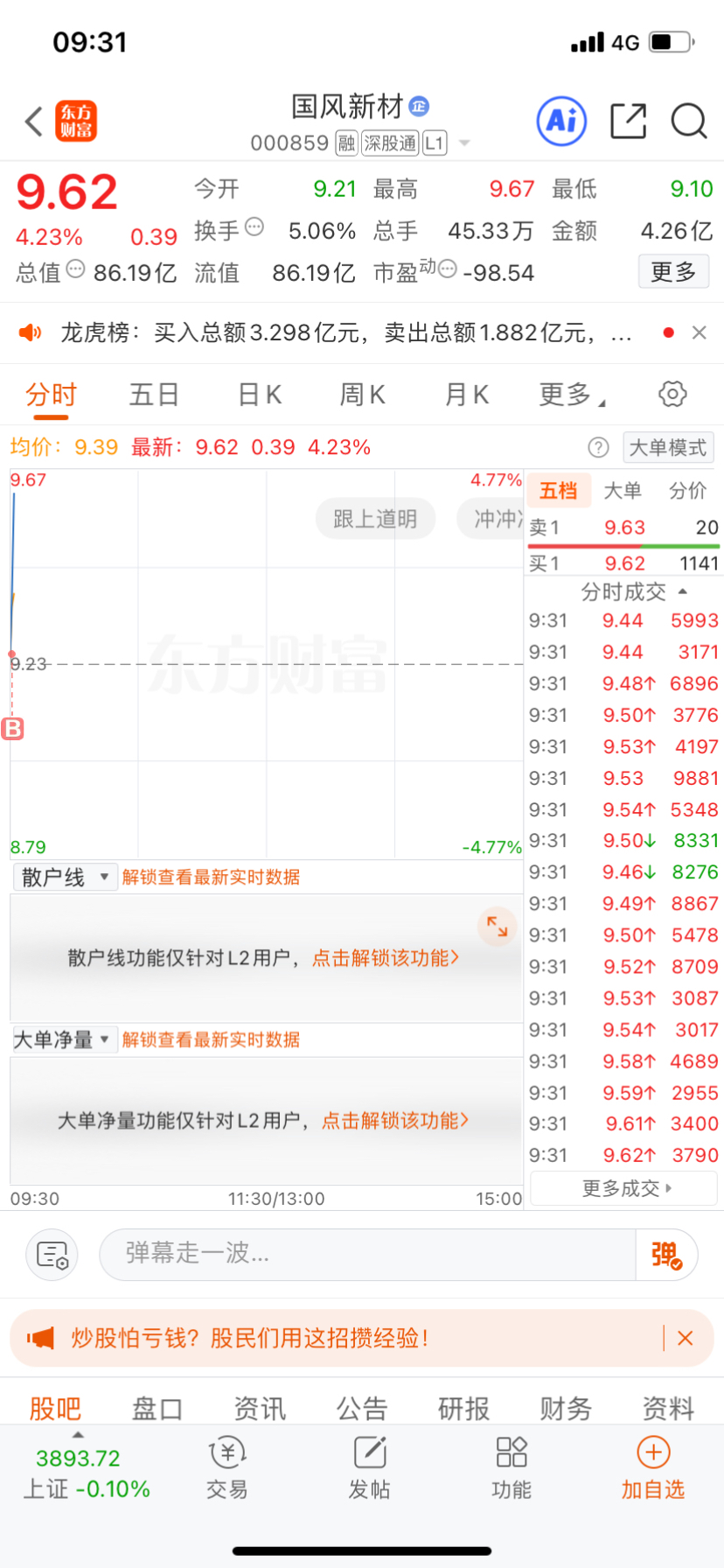 开盘选择低吸介入$国风新材(SZ000859)$ #强势机会# #实盘记录# #投资干货# #投资随笔#