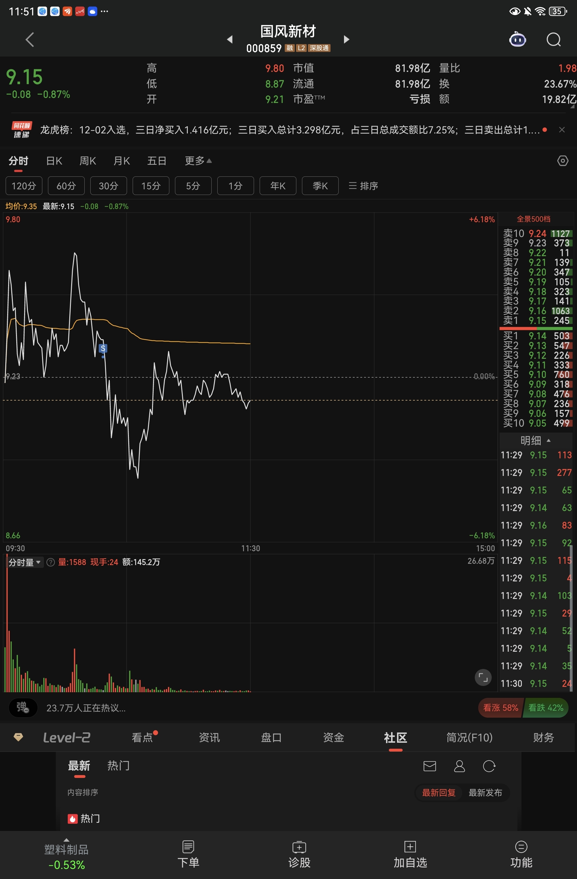 $国风新材(SZ000859)$ 4个2进3就你最的一个