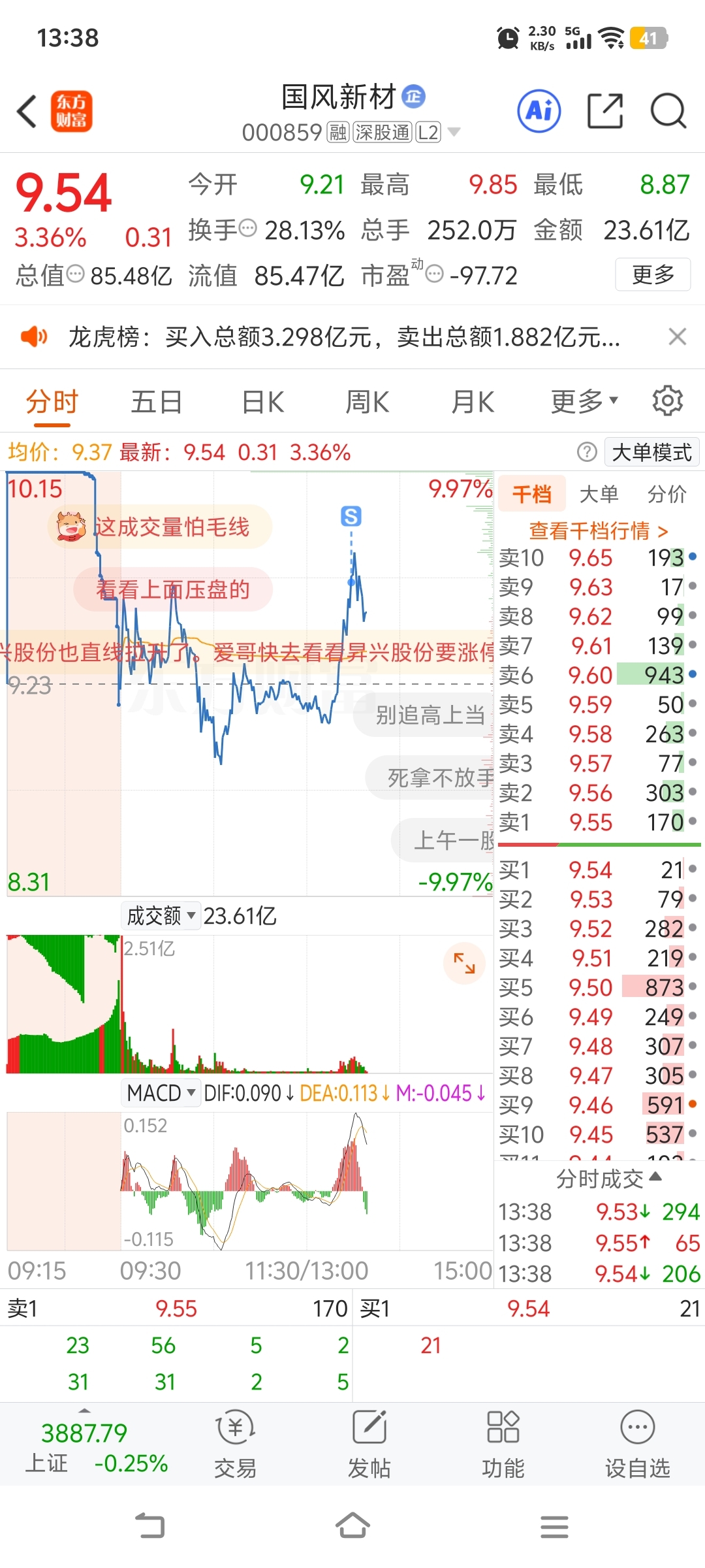 $国风新材(SZ000859)$ 上午格局一下,慌得一批