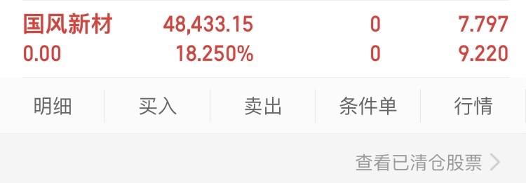 $国风新材(SZ000859)$ 今天清仓了,谢谢国风主力,这次短线吃了2个涨板