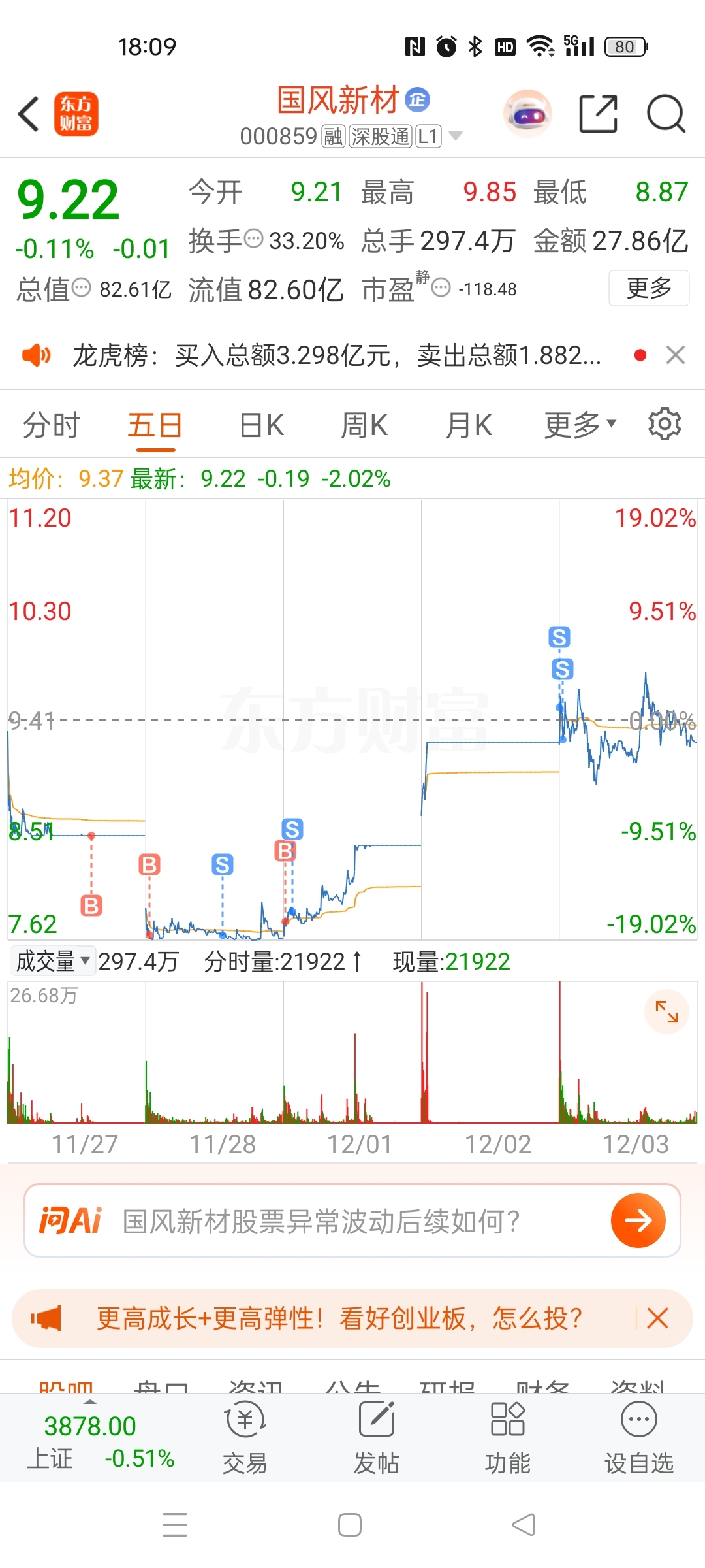 $国风新材(SZ000859)$ 今天卖了,过两天跌下来再买。