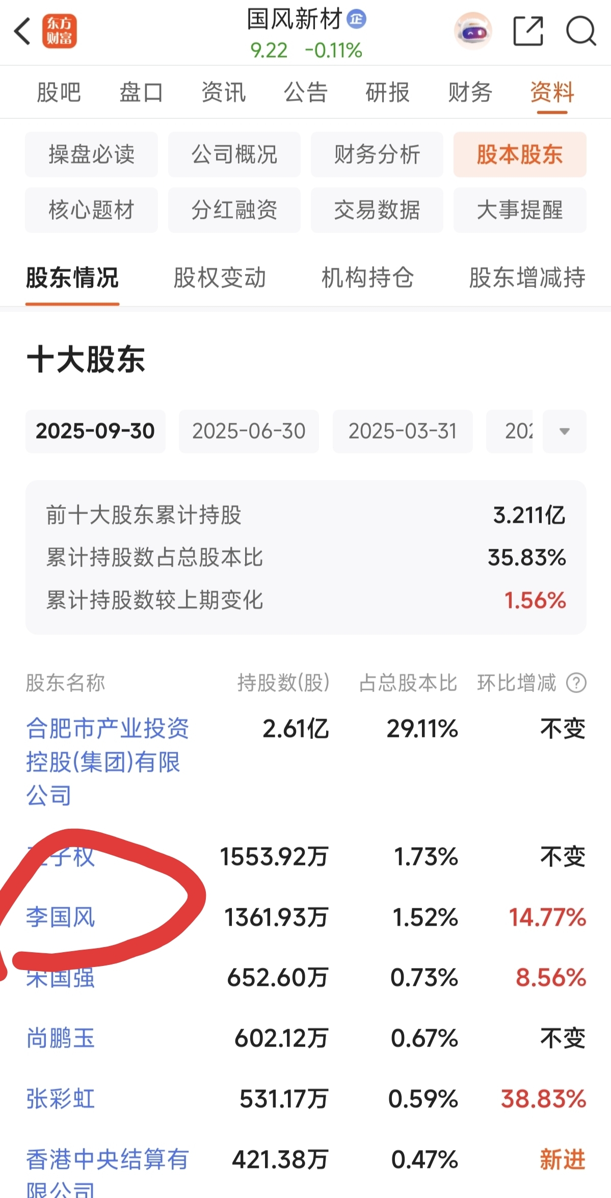 $国风新材(SZ000859)$ 这十大股东里的“李国风”是老板吗?