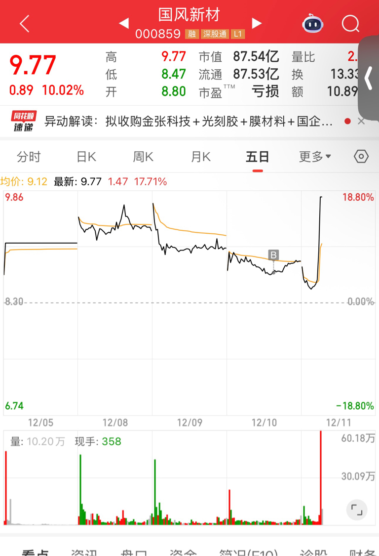 $国风新材(SZ000859)$ 昨天刚来,今天涨停,明天不会直接暴跌吧
