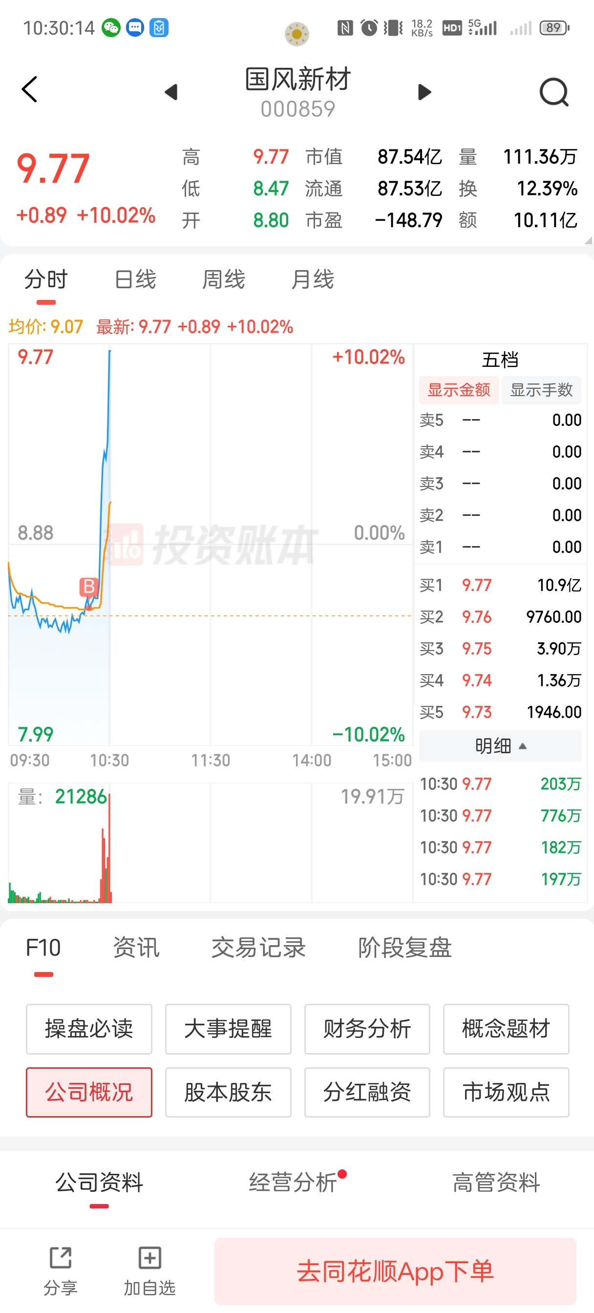 $国风新材(SZ000859)$ 股性够妖