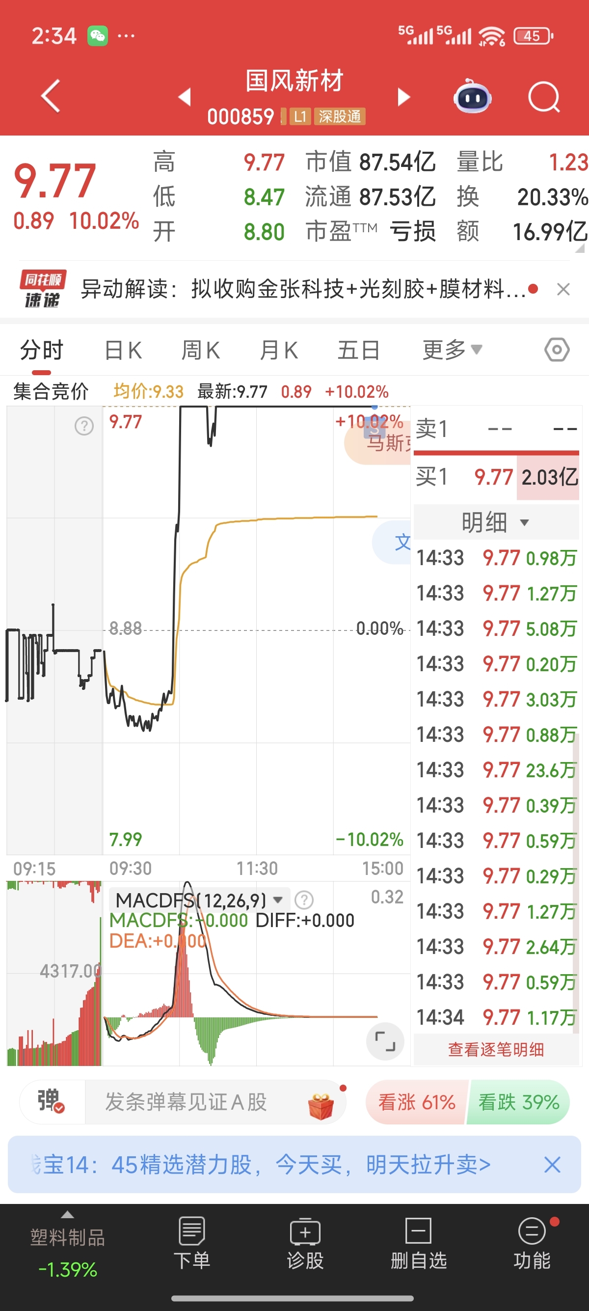 $国风新材(SZ000859)$ 格局了十几天不小心卖掉了,今晚不会停牌吧