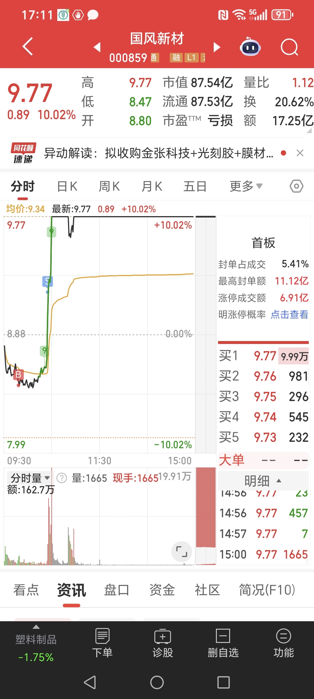 $国风新材(SZ000859)$ 挂单卖飞了,不过幸好早上买了。