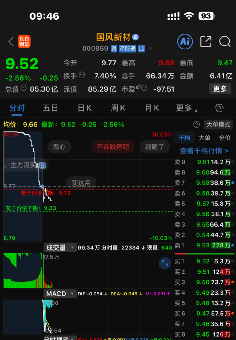 $国风新材(SZ000859)$ 集合竞价不及预期跑了