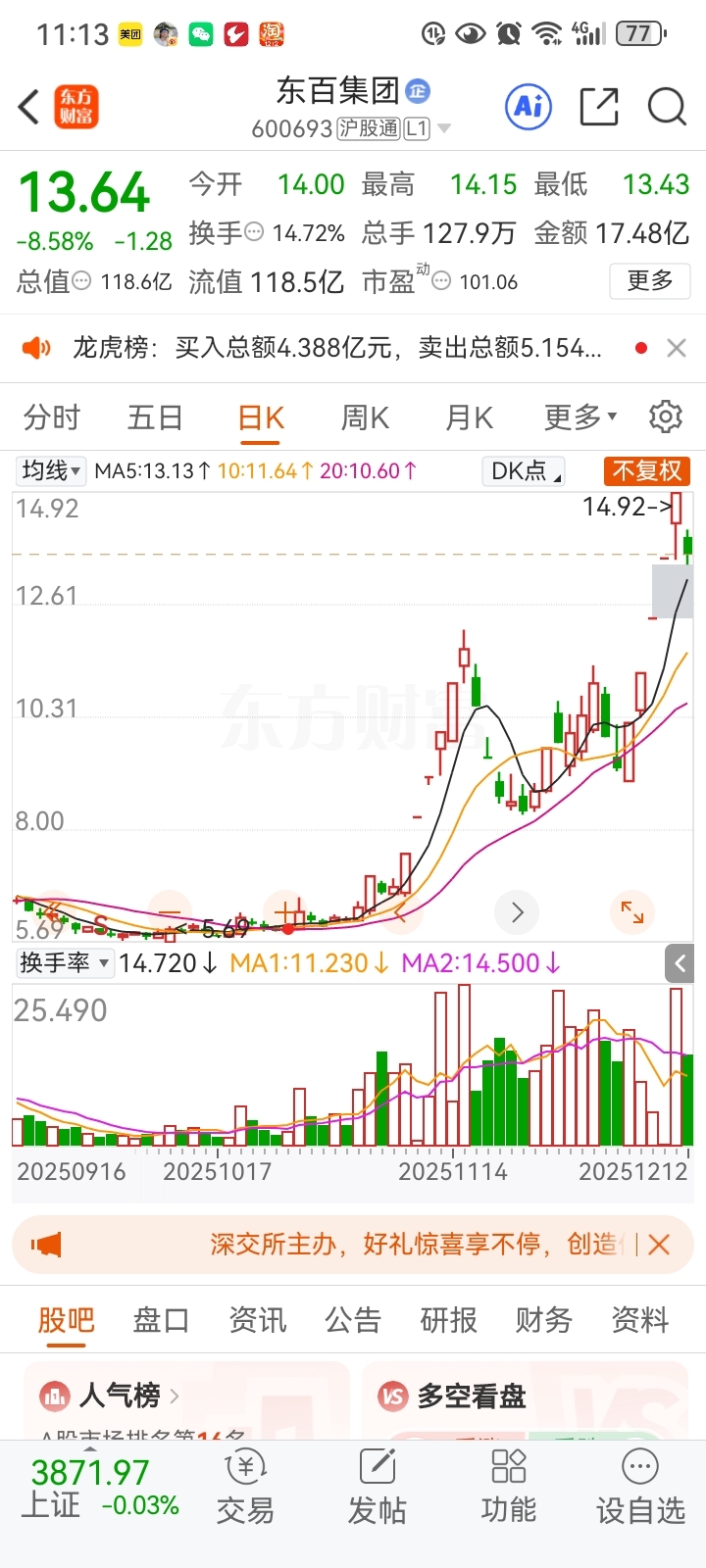能封板后面就参考s$东百集团(SH600693)$$龙洲股份(SZ002682)$不能封板就算了创新高失败各回各家