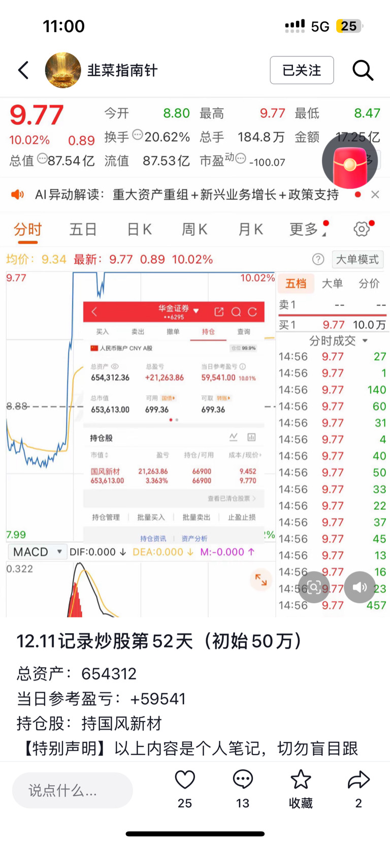 $国风新材(SZ000859)$ 我又不会砸,锁仓了兄弟