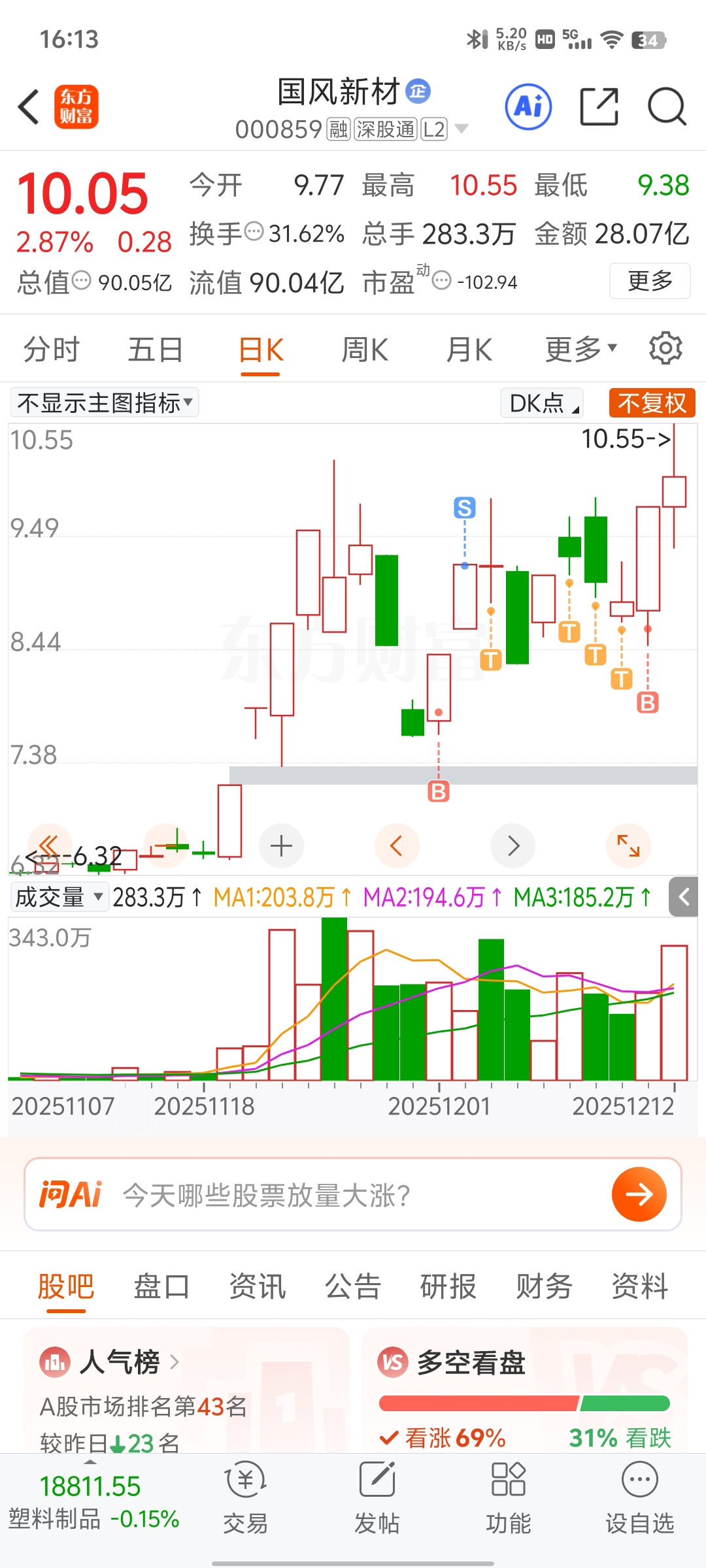 温馨提示: 1.根据《证券法》规定,禁止编造、传播虚假信息或者误导性信息,扰乱证券市场;2.用户在本社区发表的所有资料、言论等仅代表个人观点,与本网站立场无关,不对您构成任何投资建议。用户应基于自己的独立判断,自行决定证券投资并承担相应风险。《东方财富社区管理规定》