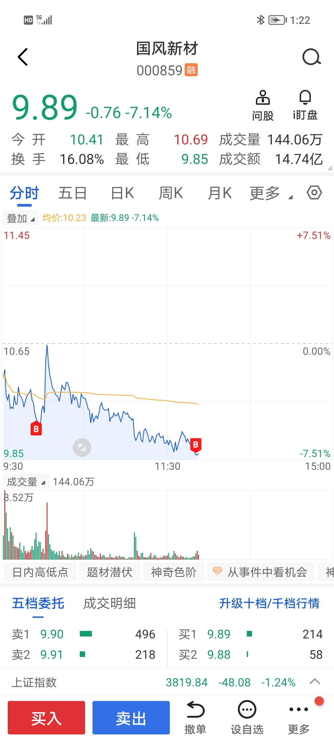 $国风新材(SZ000859)$ 打满了,干跌停认了