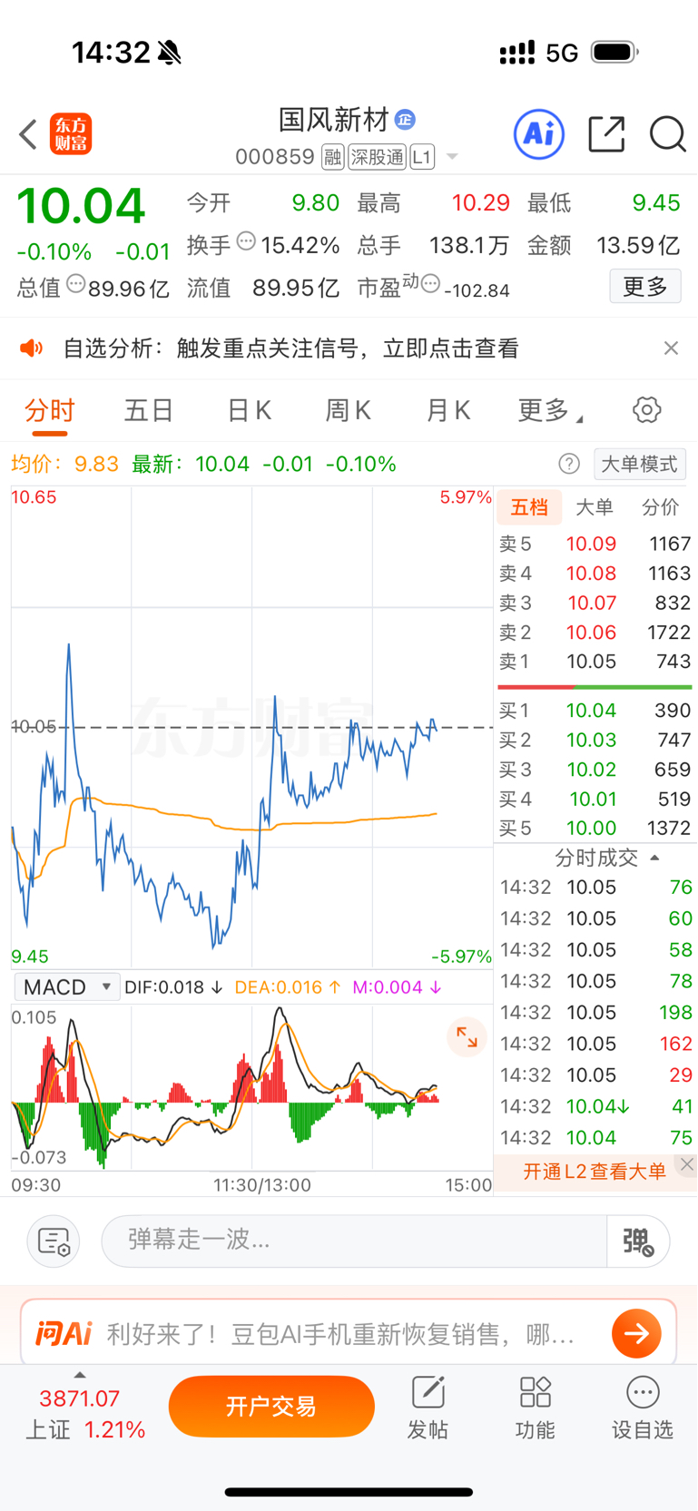 $国风新材(SZ000859)$ 玩一天玩个寂寞,尾盘又拉涨停
