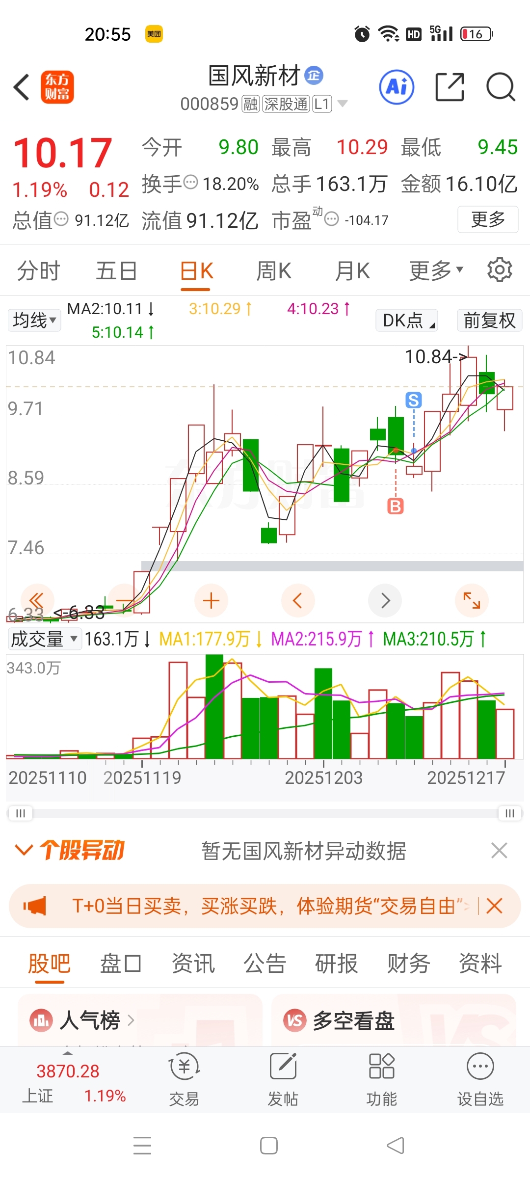 $国风新材(SZ000859)$ 这种你不格局他立马就涨起来,你格局的两三天他跌两三天,真他嘛不知道是自己买的时间不对还是卖的时间不对,亏的很烦躁,