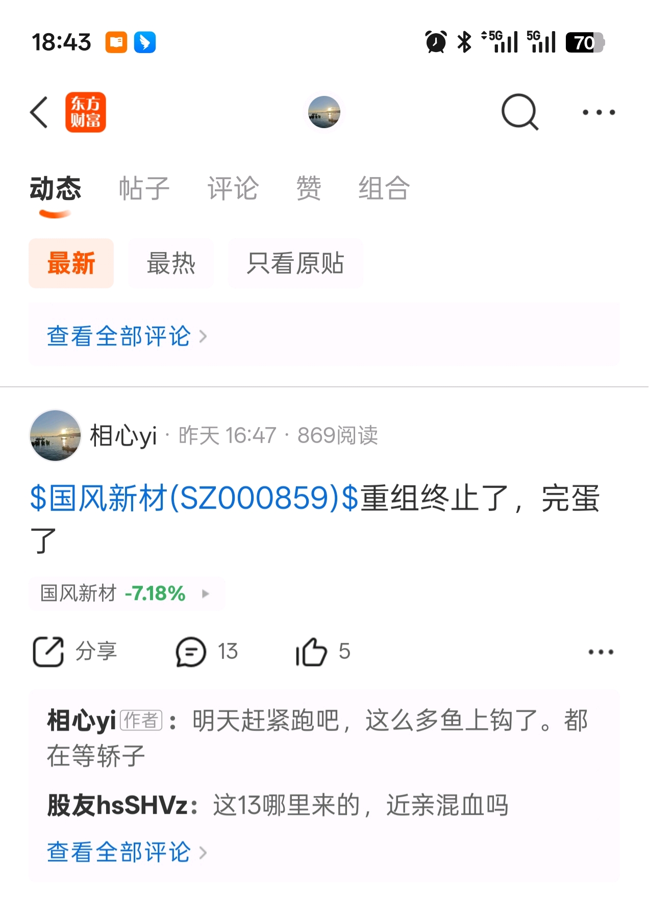 $国风新材(SZ000859)$ 你要判断家人同胞多少,只需发一条钓鱼的,看看阅读量和评论量。说实话,这个票从阅读量和评论量来看,家人太多了。而且今天跌了,人气还在往上,套住了都,随意明天必然闷。