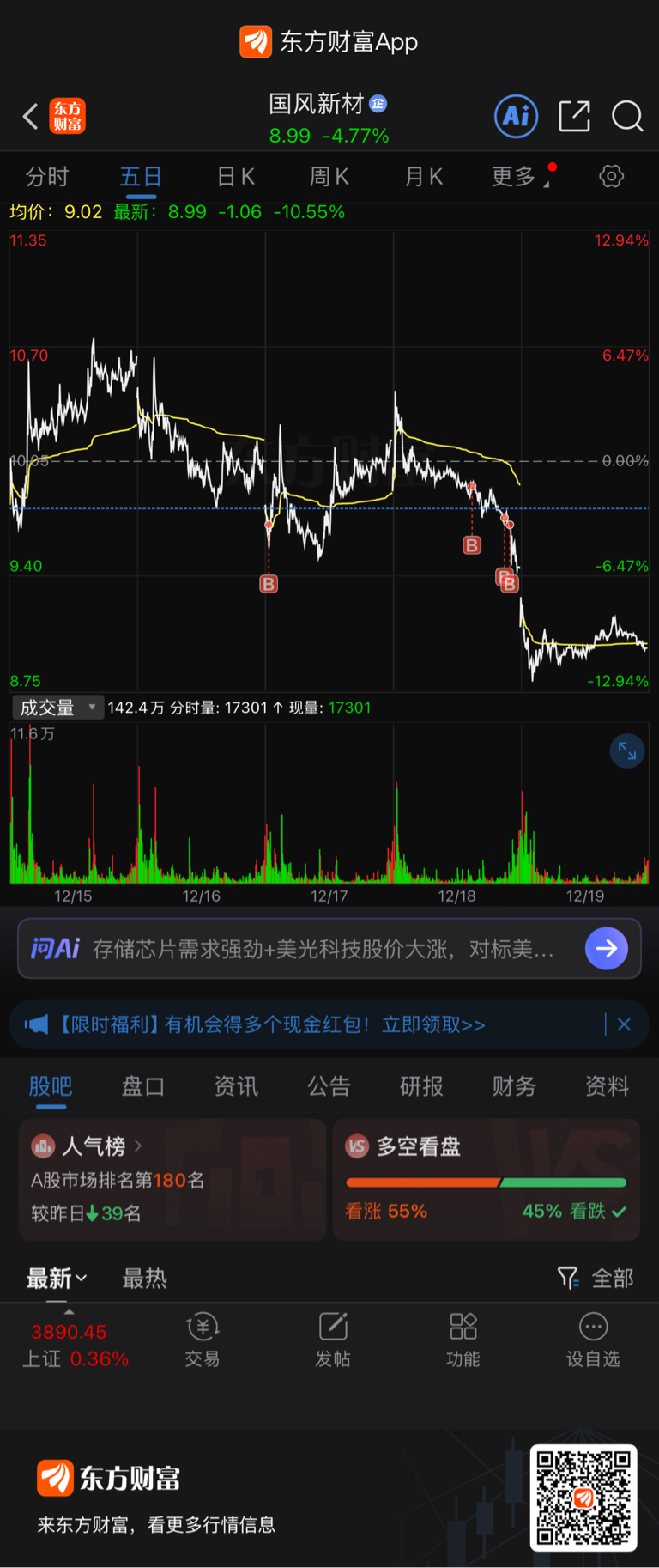 $国风新材(SZ000859)$ 这可咋办,过年还想吃肉,让我吃了大面