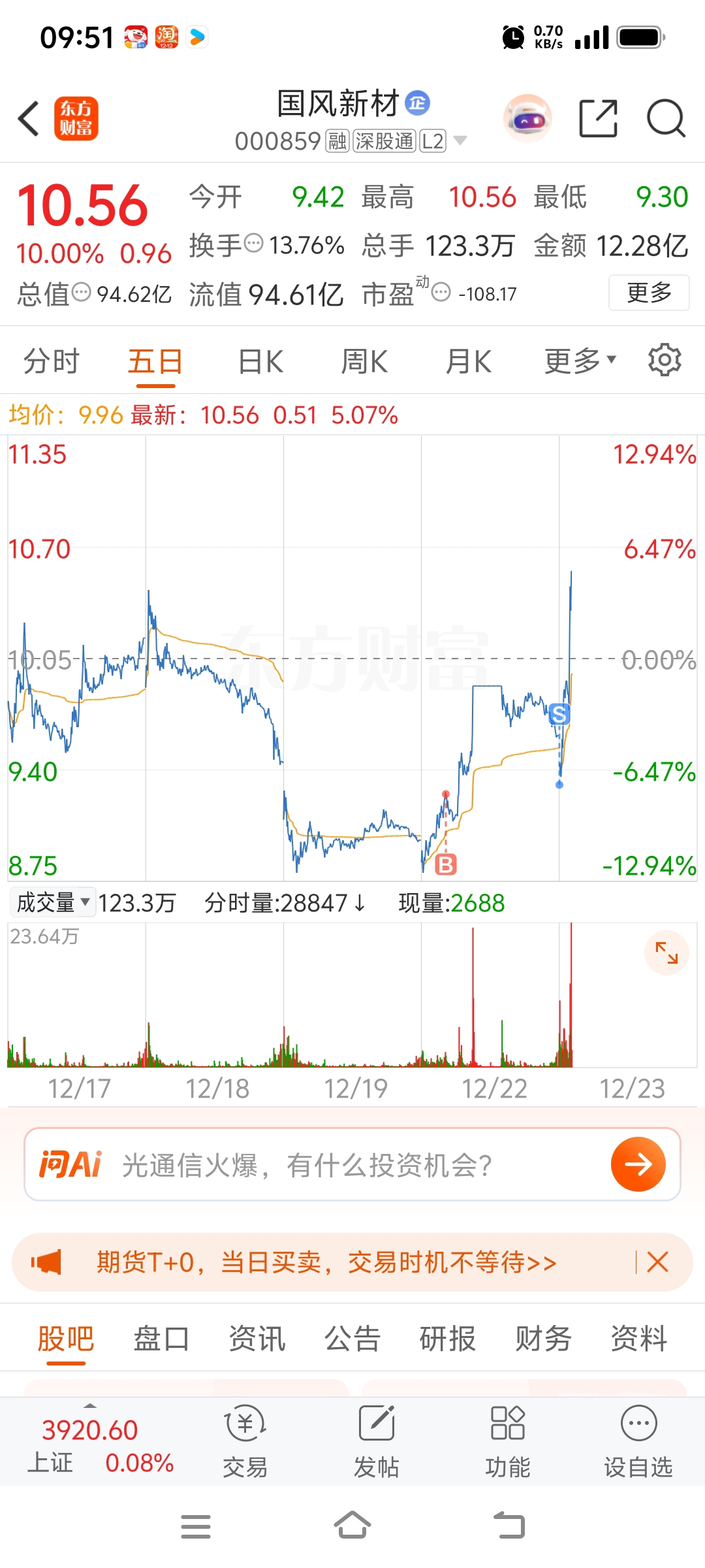 $国风新材(SZ000859)$ 难受啊,早上洗头设置了一个条件单,我怕不是涨停就是跌停这股,服了啊啊啊啊。