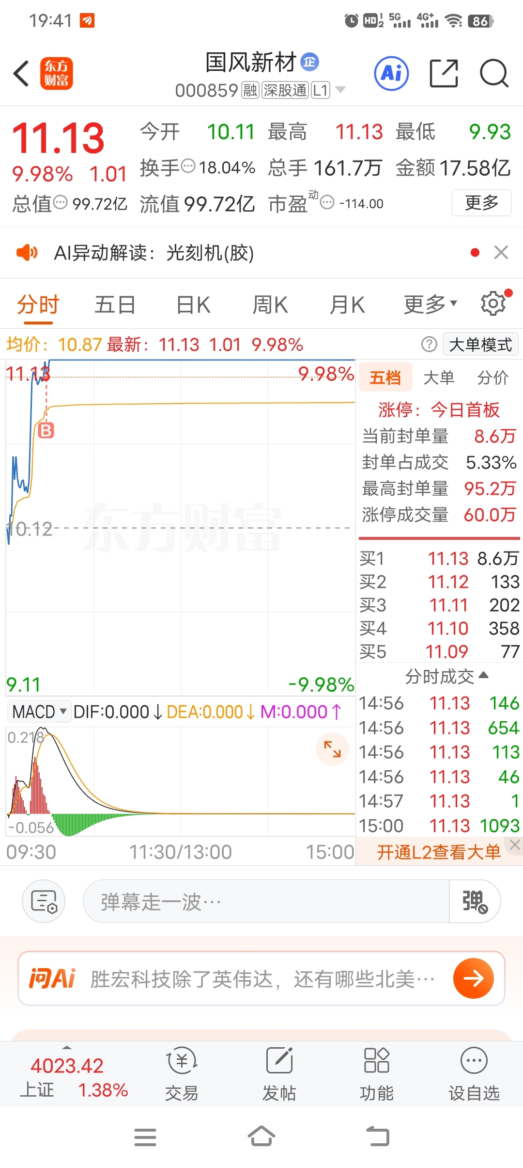 $国风新材(SZ000859)$ 你低开我就,你要高开三个点以上我就留,个人习惯