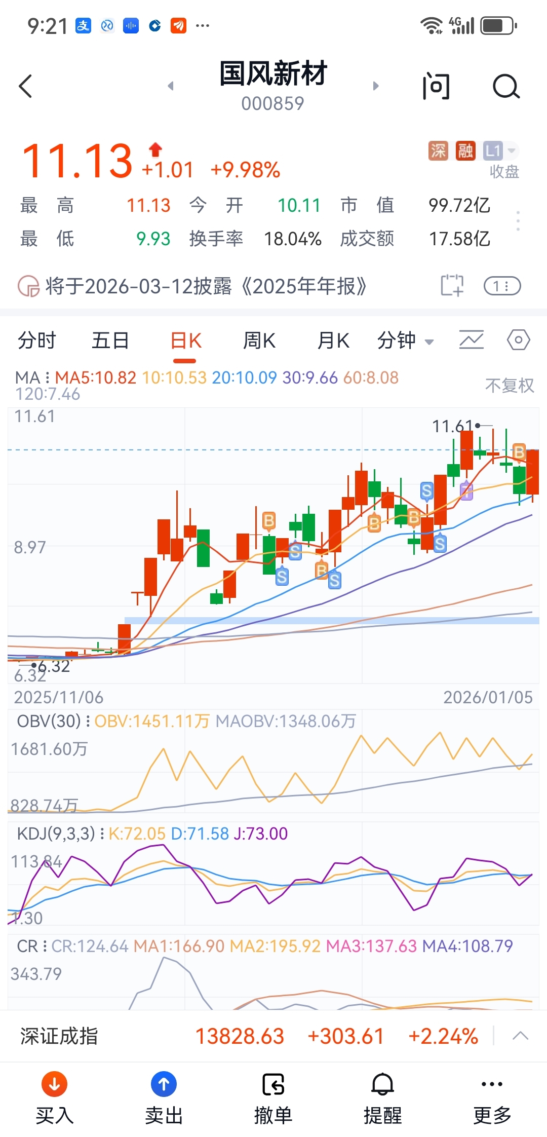 $国风新材(SZ000859)$ 这股和我很搭,做了几次高抛低吸,今天涨停抛了一半,成本趋近于零了