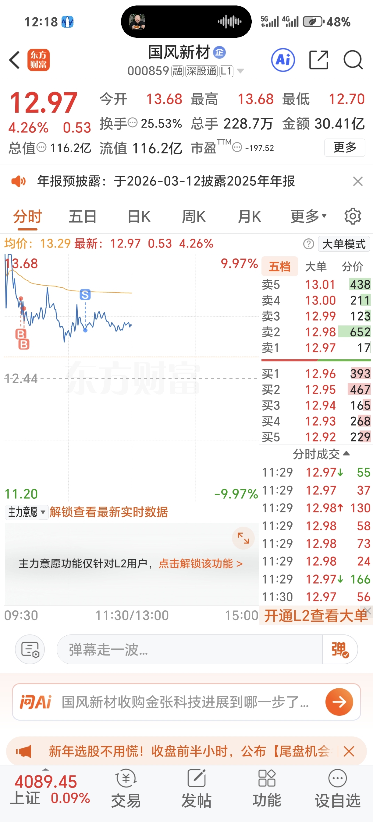 $国风新材(SZ000859)$ 反向T