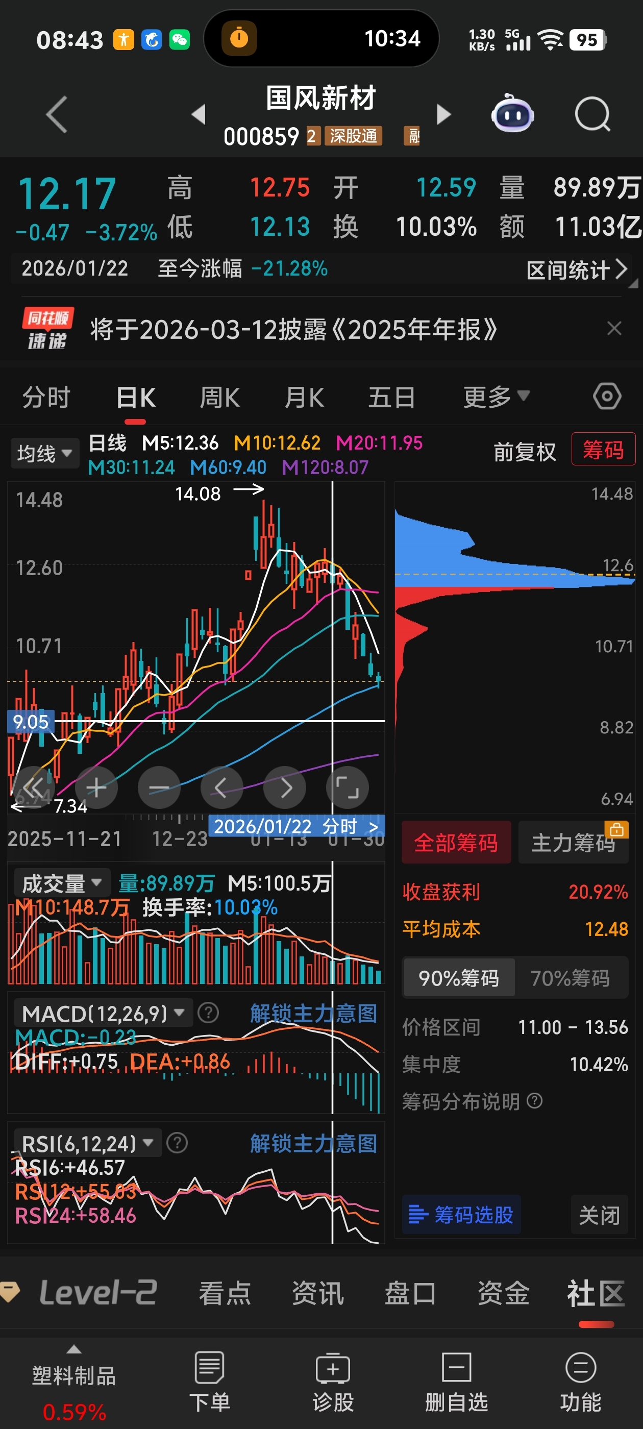 $国风新材(SZ000859)$ 上周已经出完货,一直以为会短期震荡,毕竟是有收购的期待,就没有动,结果严重被套。彻底认清自己就是韭菜。不相信收购了,准备认赔出局。