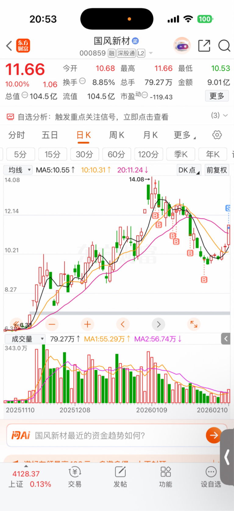 $国风新材(SZ000859)$ 回本就走了 提前祝大家过年好