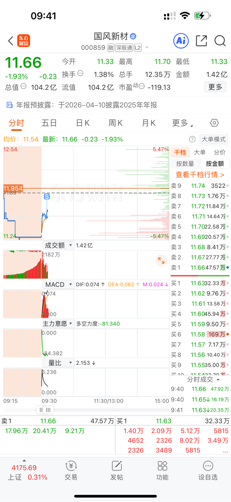 $国风新材(SZ000859)$ 杂毛跟我有仇?刚卖就拉了一点,趁机打压股价,恶心人