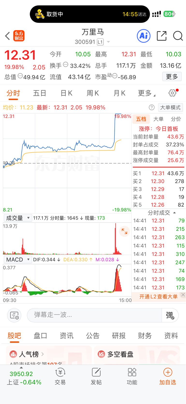 $顺鑫农业(SZ000860)$ 带马股票,疯狂拉升