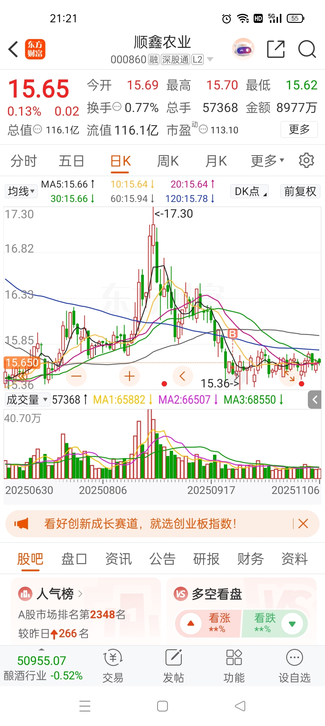 $顺鑫农业(SZ000860)$ 这个号买的一个多月了今天回本了,一直横盘这