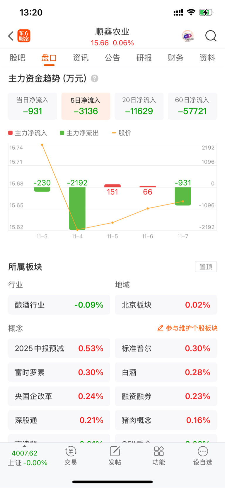 $顺鑫农业(SZ000860)$ 这种常年资金流出的盘口,你们敢买,敢投资这种企业?