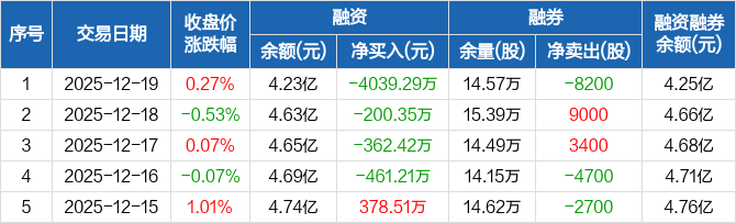 顺鑫农业:融资余额4.23亿元,创近一年新低(12-19)
