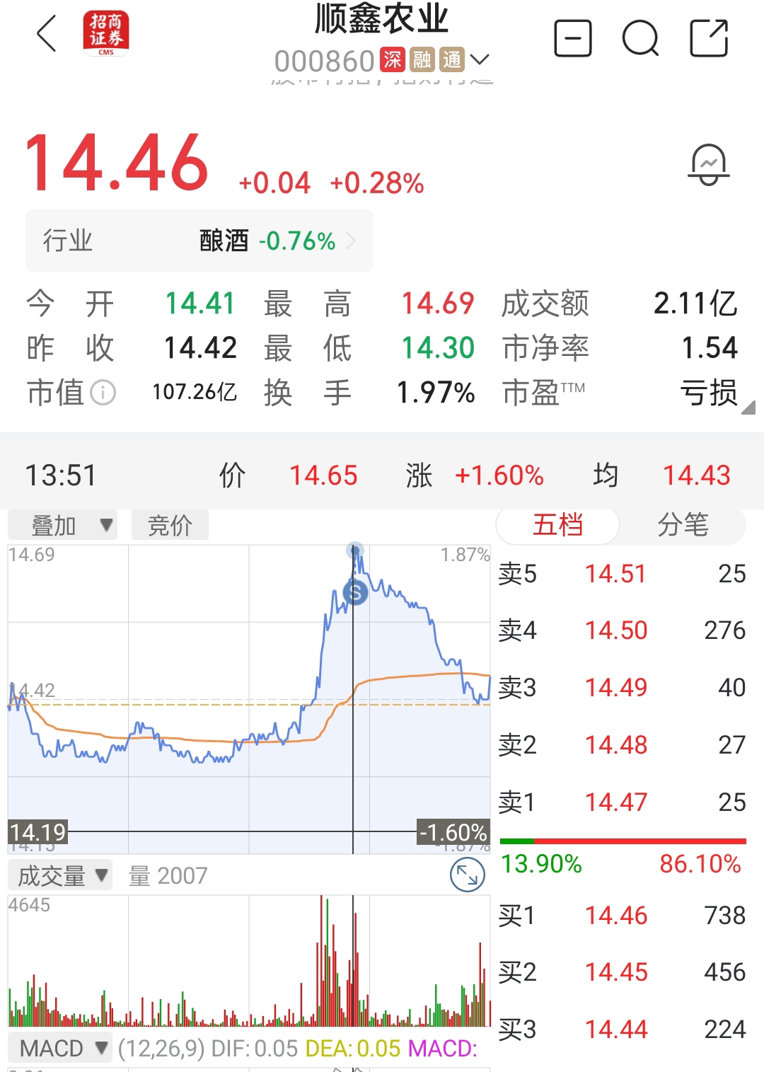 $顺鑫农业(SZ000860)$ 昨天41买的,今天卖在最高点,终于在这落汤鸡身上拔到毛了