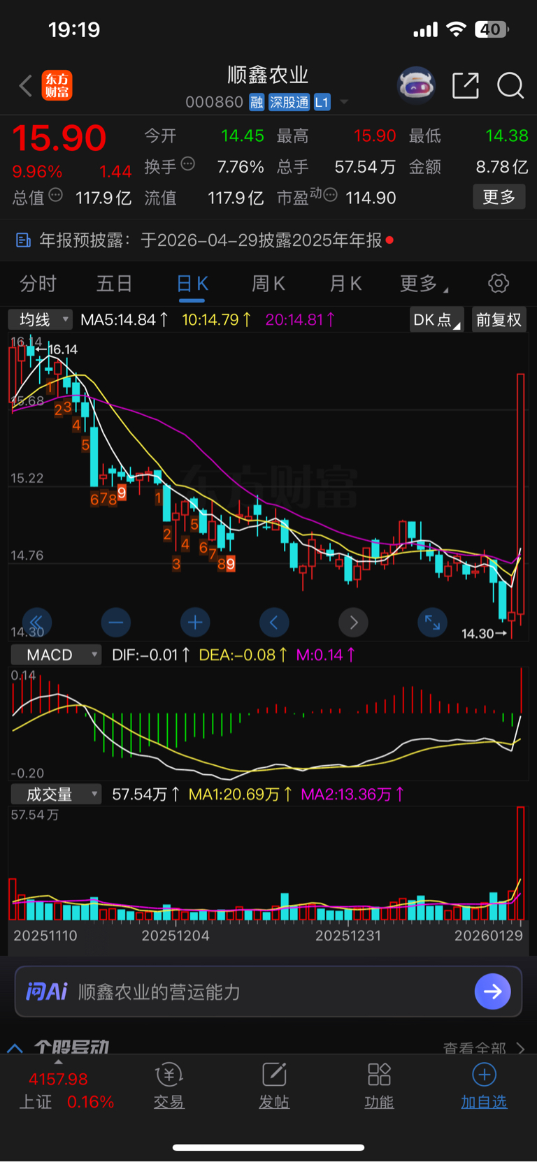 $顺鑫农业(SZ000860)$ 底部涨停,虽然不能立刻反转,但是是反转的信号,所以你相信猪肉你就买小盘股